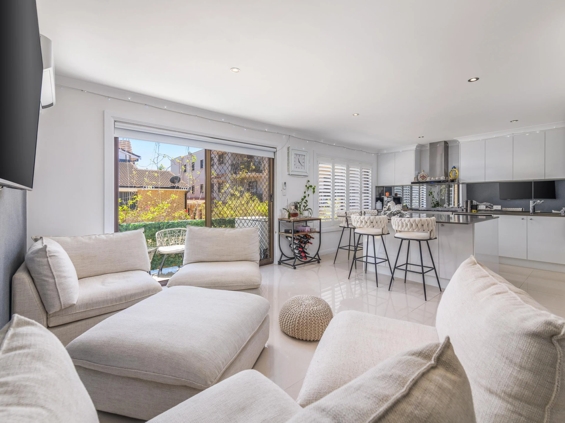 Open plan living with air conditioning opening up to a private balcony